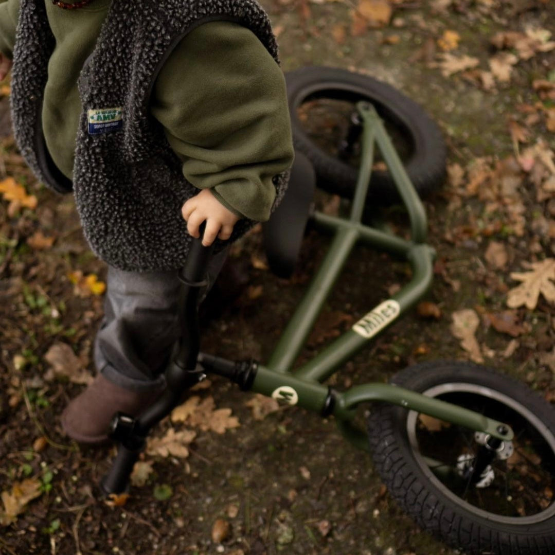 Miles ontstond uit een simpele schets: wanneer je vader wordt, ga je als fietsliefhebber natuurlijk op zoek naar die allereerste fiets. Maar een loopfiets die stoer, stijlvol én betaalbaar is, bleek lastig te vinden. Dus tekenden we er zelf één.